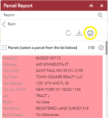 4. Next, click the Report button. A red outline will appear around the boundary of the parcel and information about the parcel will be collected.