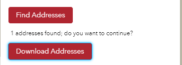 6. If the Addresses option is selected, then first, select the addresses desired using one of the selection tools. Address points may be turned on in the layer list (click the GIS Layers button on the top-right of the webpage) in order to view the point locations.
