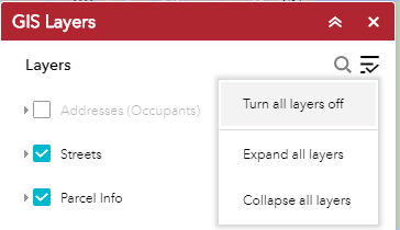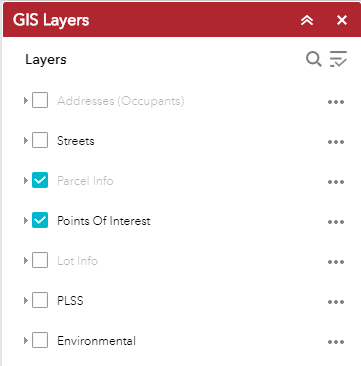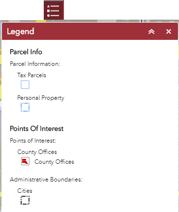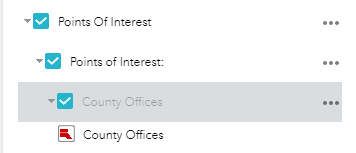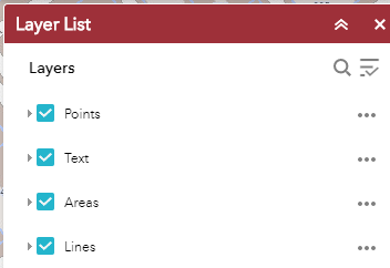 Click on the arrow to open a layer item and view sub-layers within a group, or the associated symbology. The transparency of each layer may be adjusted by clicking on the 3 dots (…) to the right of the layer.