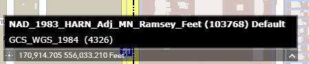 default coordinates are in feet using the NAD_1983_HARN_Adj_MN_Ramsey_Feet